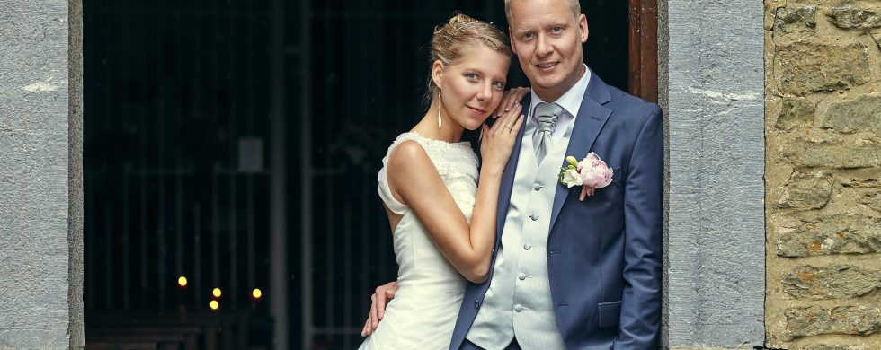 Le mariage civil s’est passé à la commune de Liège, puis nous avons été faire quelques photos dans un parc à Ans, sous une fine pluie.